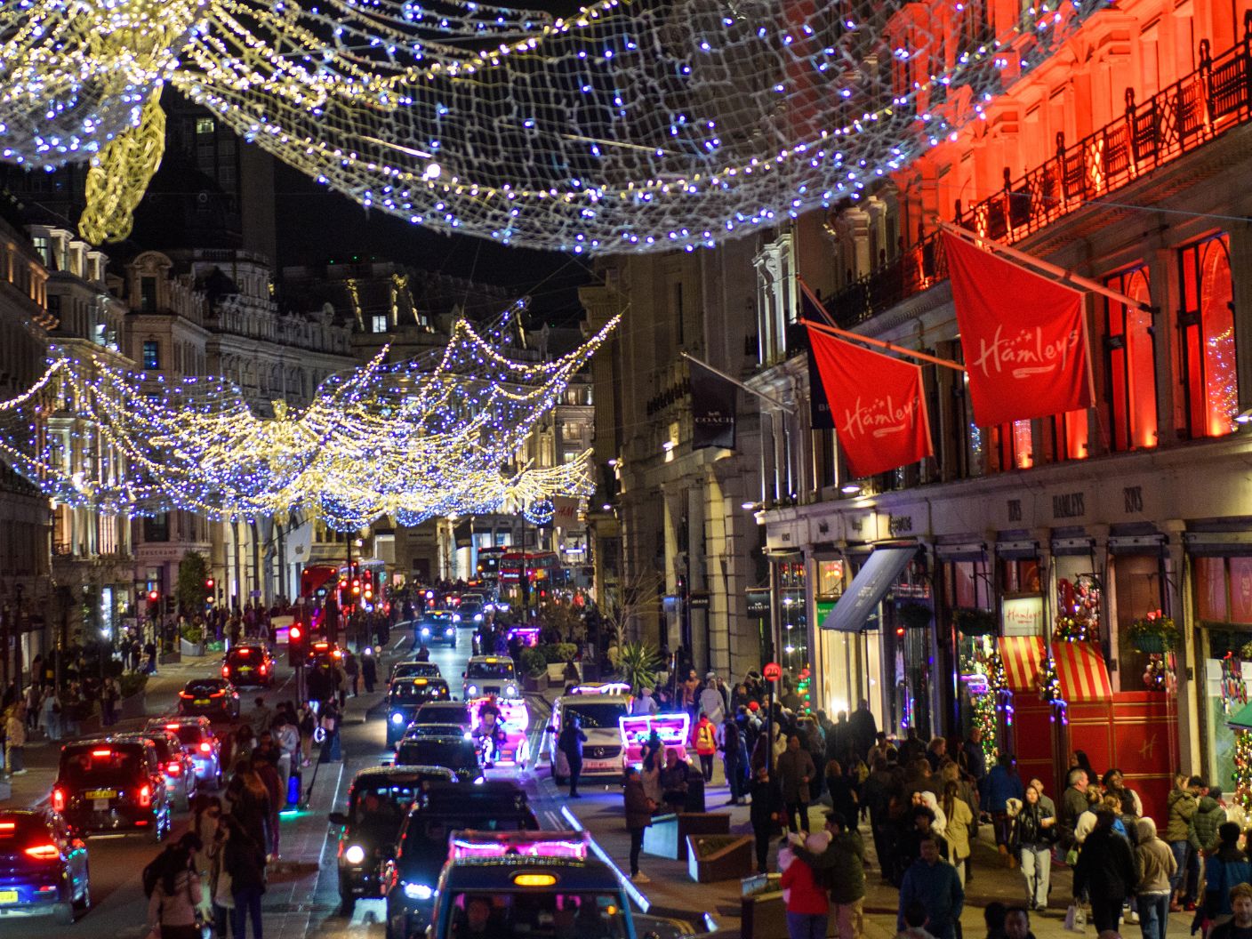 You will marvel at the majestic scenes of St James's and Piccadilly Circus and see the picture-pretty Christmas lights inspired by the statue of Anteros, the Greek god of requited love. We’ll sweep you under the magnificent Regent Street Christmas lights and show you its seasonal displays in the famous store windows such as Hamleys, the world's oldest and largest toy store.